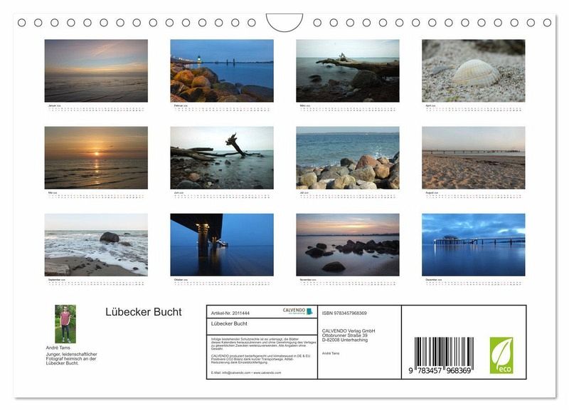 QUALITÄT - Hochwertiger Fotokalender mit 12 wunderschönen Motiven auf lichtbeständigem Bilderdruckpapier, robuste Spiralbindung mit Aufhängebügel.NACHHALTIG - deutliche Abfallreduzierung durch bedarfsgerechte Einzelstückfertigung, umweltfreundliches FSC-zertifiziertes Papier, Produktion in Deutschland, klimabewusste Logistik.PERFEKTES GESCHENK - Kalender für Freunde und Familie, für Kinder und Erwachsene, jung und alt, zu Weihnachten, Geburtstag oder zwischendurch.VIELFALT - Bildkalender in verschiedenen Formaten, z.B. DIN A5, DIN A4, DIN A3 sowie DIN A2. Ob Naturmotiv, Gemälde oder Fotos, ideal für ein persönliches Wohlfühlambiente.Monatskalender mit Eindrücken von der Lübecker Bucht. von Autor(in): André Tams