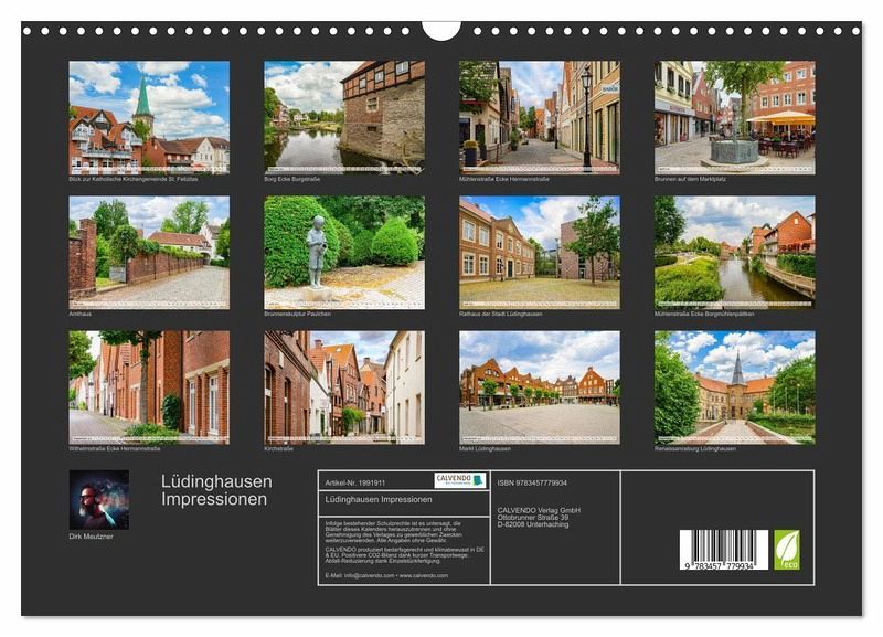 In diesem zwölf Monats Kalender erwarten sie einmalige Bilder des Fotografen Dirk Meutzner, von der Stadt Lüdinghausen. Auf seinen unzähligen Reisen hat er in dieser bezaubernden Stadt in Nordrhein-Westfalen südwestlich von Münster im Kreis Coesfeld halt gemacht. Lüdinghausen besteht aus seiner Kernstadt und dem Stadtteil Seppenrade.