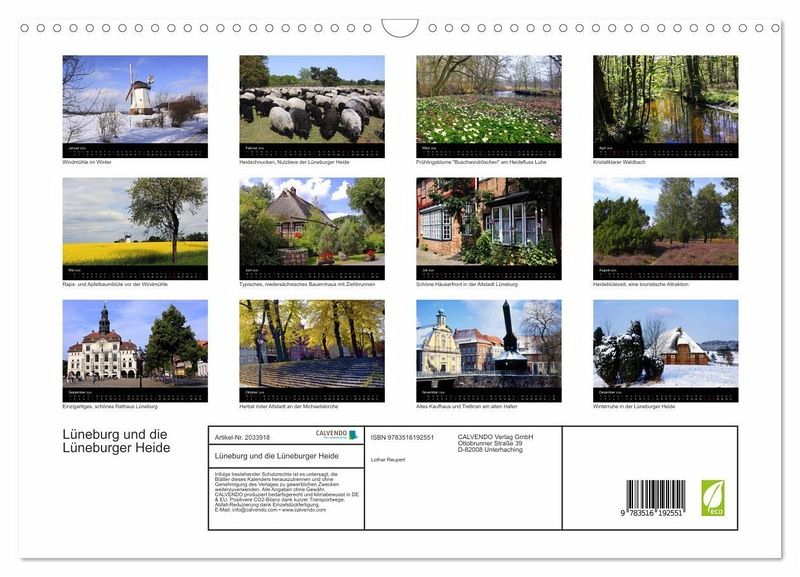 Dieser Kalender zeigt einige Sehenswürdigkeiten und Schönheiten von Lüneburg und der Lüneburger Heide.