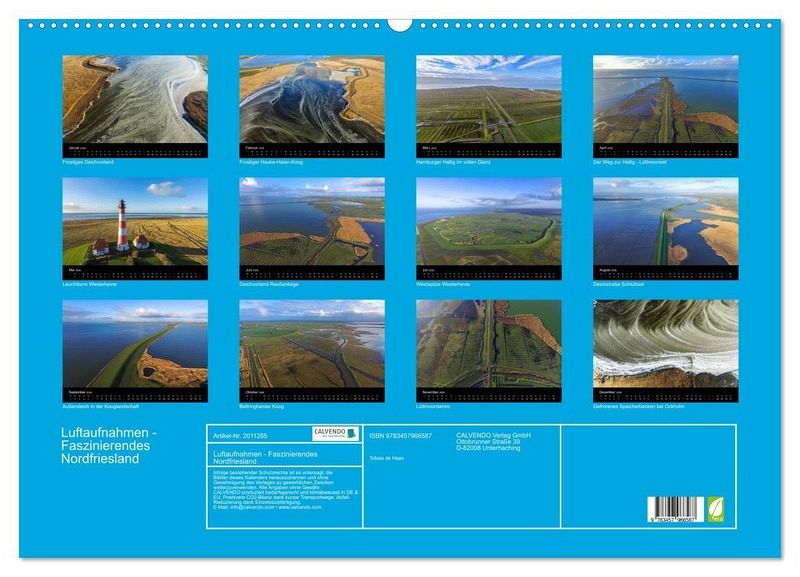 QUALITÄT - Hochwertiger Fotokalender mit 12 wunderschönen Motiven auf lichtbeständigem Bilderdruckpapier, robuste Spiralbindung mit Aufhängebügel.NACHHALTIG - deutliche Abfallreduzierung durch bedarfsgerechte Einzelstückfertigung, umweltfreundliches FSC-zertifiziertes Papier, Produktion in Deutschland, klimabewusste Logistik.PERFEKTES GESCHENK - Kalender für Freunde und Familie, für Kinder und Erwachsene, jung und alt, zu Weihnachten, Geburtstag oder zwischendurch.VIELFALT - Bildkalender in verschiedenen Formaten, z.B. DIN A5, DIN A4, DIN A3 sowie DIN A2. Ob Naturmotiv, Gemälde oder Fotos, ideal für ein persönliches Wohlfühlambiente.Das vielfältige, atemberaubende Nordfriesland aus einer ganz besonderen Perspektive - Luftaufnahmen, welche begeistern! von Autor(in): Tobias de Haan