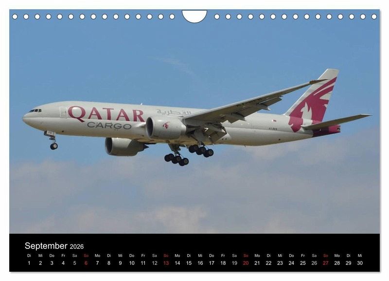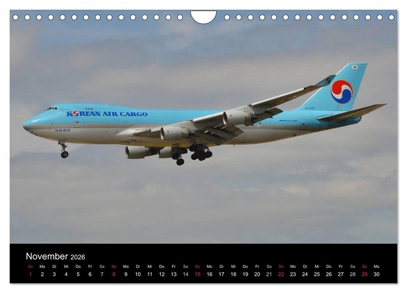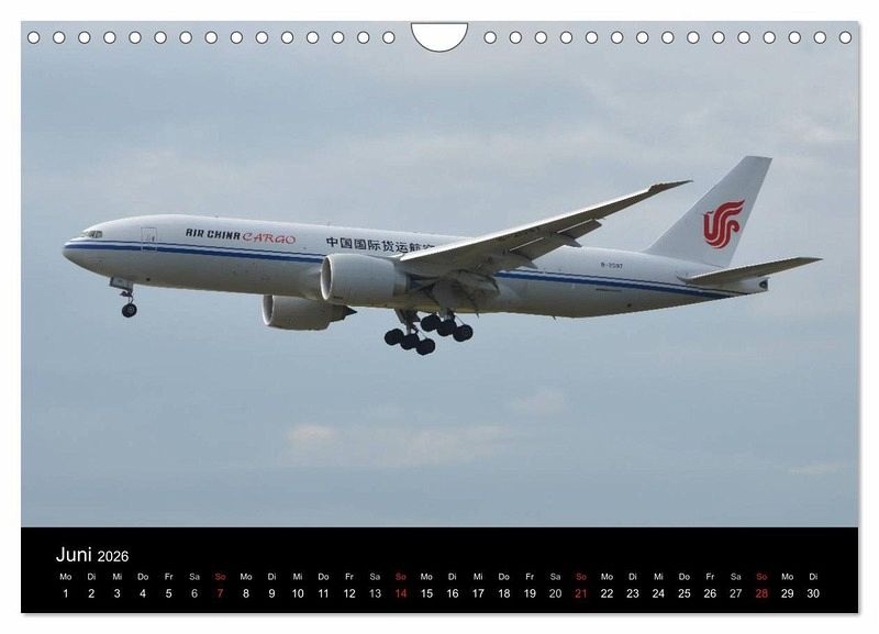 Dieder Kalender zeigt eine besondere Auswahl verschiedener Transportflugzeuge verschiedener Airlines und Flugzeugtypen beim Landeanflug.