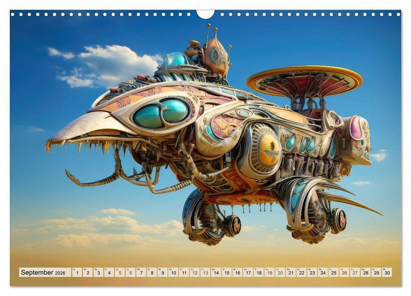 Haben Sie jemals von einer atemberaubenden Welt geträumt, in der Steampunk auf Alebrije trifft? Fantasie Luftschiffe ist ein einzigartiger Kalender, der Ihre Vorstellungskraft entfesselt und Sie in eine fantastische Welt voller liebevoller Verrücktheit und Kreativität entführt. Diese überaus originellen Luftschiffe wurden mit Hilfe von Künstlicher Intelligenz geschaffen, um Ihnen ein unvergessliches Erlebnis zu bieten. Lassen Sie sich von den schillernden Farben und den surrealen Kombinationen verzaubern. Mechanisch insektenähnliche Flugobjekte gleiten majestätisch durch die Lüfte, ein wahres…mehr