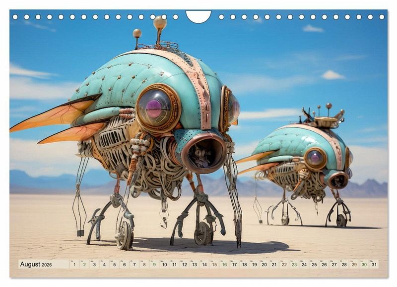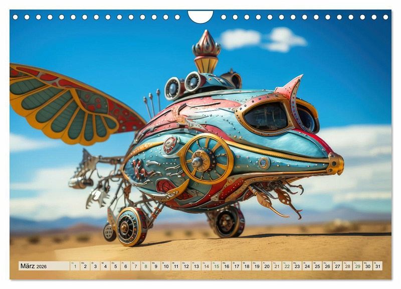 Haben Sie jemals von einer atemberaubenden Welt geträumt, in der Steampunk auf Alebrije trifft? Fantasie Luftschiffe ist ein einzigartiger Kalender, der Ihre Vorstellungskraft entfesselt und Sie in eine fantastische Welt voller liebevoller Verrücktheit und Kreativität entführt. Diese überaus originellen Luftschiffe wurden mit Hilfe von Künstlicher Intelligenz geschaffen, um Ihnen ein unvergessliches Erlebnis zu bieten. Lassen Sie sich von den schillernden Farben und den surrealen Kombinationen verzaubern. Mechanisch insektenähnliche Flugobjekte gleiten majestätisch durch die Lüfte, ein wahres…mehr
