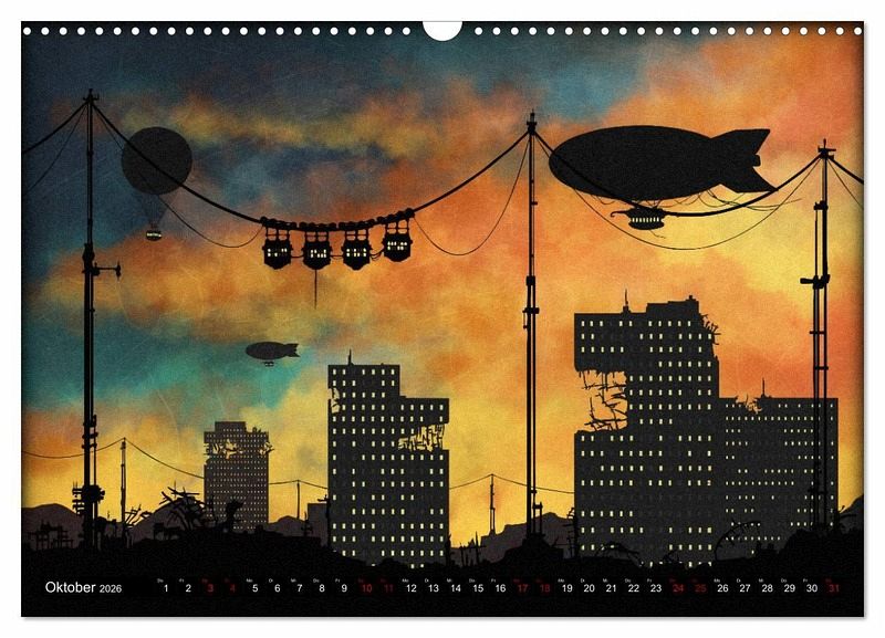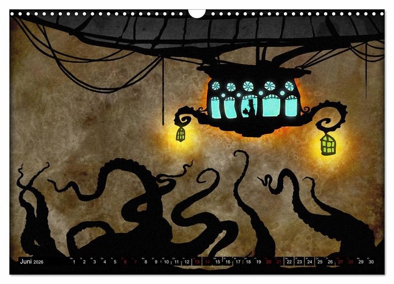 Lassen Sie sich in von der Hand des Künstlers in 12 phantastische Orte entführen. Erleben Sie eine Reise in viktorianisch anmutenden Luftschiffen, trotzen Sie den Gefahren, denen die Aeronauten, in diesen brillanten Bildtafeln ausgesetzt sind. Mystische Tentakelwesen und prähistorische Tiere bevölkern Wasser, Land und Äther in diesen Darstellungen, die uns an weit entfernte Zeiten gemahnen.