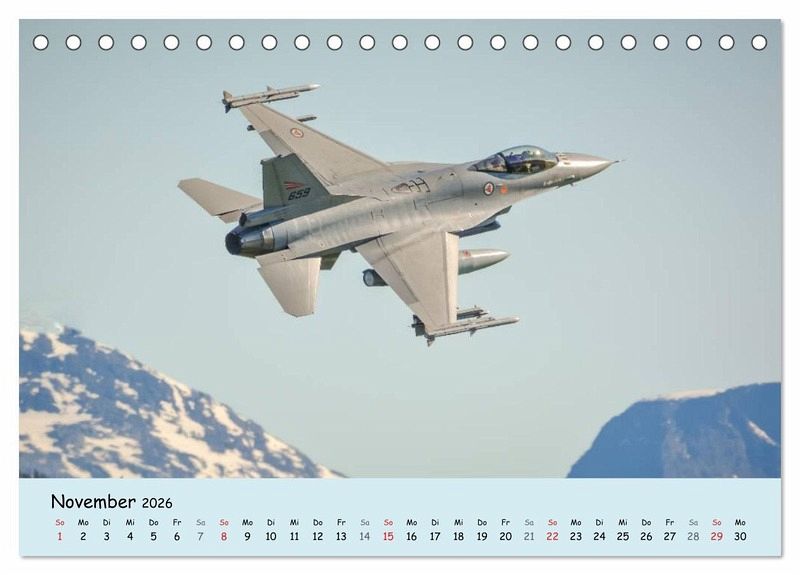 Ob Eurofighter aus Deutschland, F-15 aus Japan oder A-10 der Vereinigten Staaten - in diesem Kalender sind Fotos vom Kampfflugzeugen aus vielen Ländern vertreten.