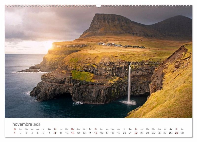 L'atmosphère nordique a toujours le pouvoir de donner une touche particulière aux images photographiques. Dans ce cas, aux îles Féroé, l'automne offre des nuances infinies de jaune et d'orange. Les petits villages de la côte, avec leurs églises aux toits pointus et leurs animaux au pâturage, créent de merveilleux paysages de contes de fées.