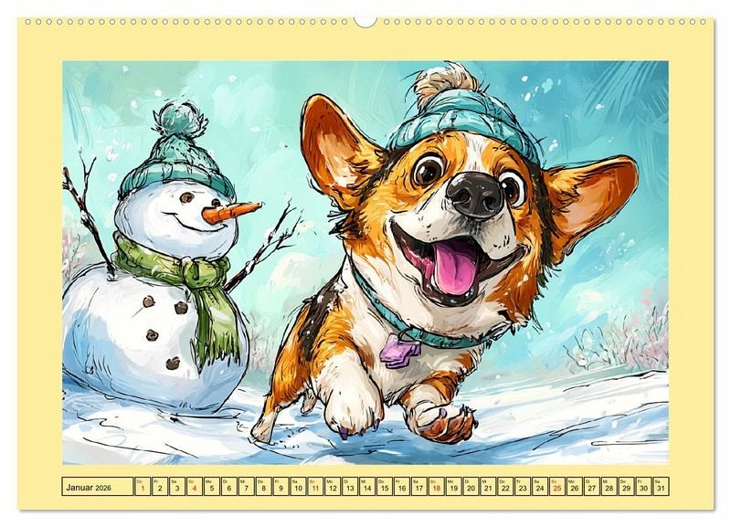 Dieser charmante Corgi Cartoon Kalender bringt jeden Monat gute Laune ins Haus! Die niedlichen Hunde mit ihren kurzen Beinchen und frechen Blicken erleben herrlich komische Abenteuer - vom Corgi mit Hasenohren bis zum glücklichen Geburtstag. Jeder Monat wurde mit der Hilfe von KI erstellt und zeigt eine neue Szene voller Herzenswärme und Witz. Ein Muss für alle Corgi-Fans und Liebhaber von humorvollen Tierillustrationen.