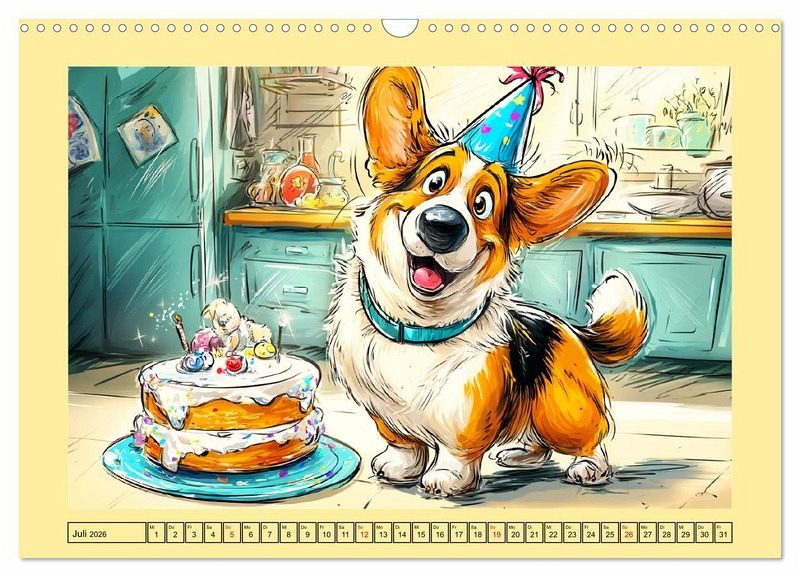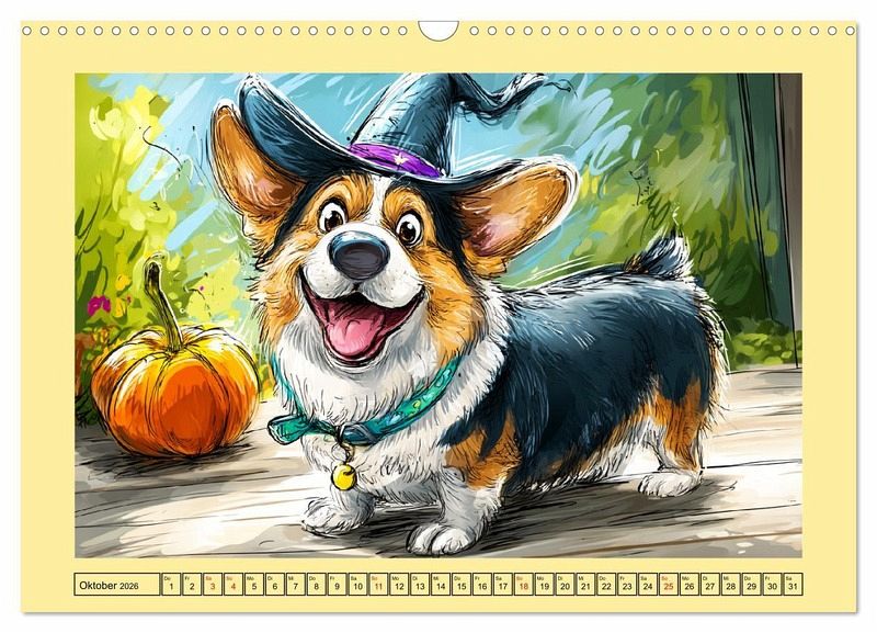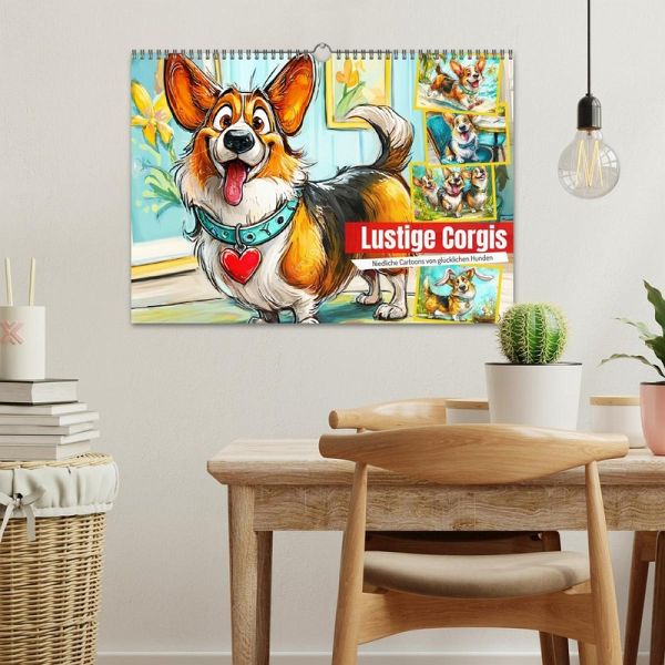 Dieser charmante Corgi Cartoon Kalender bringt jeden Monat gute Laune ins Haus! Die niedlichen Hunde mit ihren kurzen Beinchen und frechen Blicken erleben herrlich komische Abenteuer - vom Corgi mit Hasenohren bis zum glücklichen Geburtstag. Jeder Monat wurde mit der Hilfe von KI erstellt und zeigt eine neue Szene voller Herzenswärme und Witz. Ein Muss für alle Corgi-Fans und Liebhaber von humorvollen Tierillustrationen.