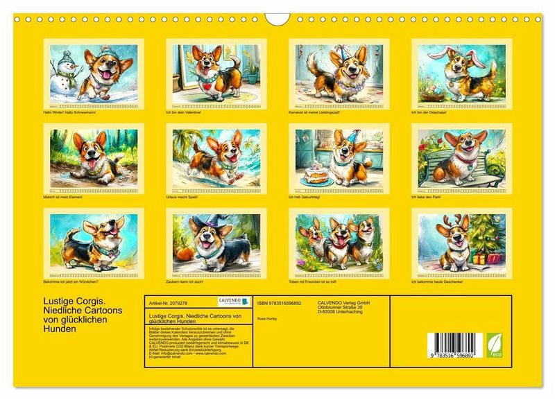 QUALITÄT - Hochwertiger Fotokalender mit 12 wunderschönen Motiven auf lichtbeständigem Bilderdruckpapier, robuste Spiralbindung mit Aufhängebügel.NACHHALTIG - deutliche Abfallreduzierung durch bedarfsgerechte Einzelstückfertigung, umweltfreundliches FSC-zertifiziertes Papier, Produktion in Deutschland, klimabewusste Logistik.PERFEKTES GESCHENK - Kalender für Freunde und Familie, für Kinder und Erwachsene, jung und alt, zu Weihnachten, Geburtstag oder zwischendurch.VIELFALT - Bildkalender in verschiedenen Formaten, z.B. DIN A5, DIN A4, DIN A3 sowie DIN A2. Ob Naturmotiv, Gemälde oder Fotos, ideal für ein persönliches Wohlfühlambiente.Ein fröhlicher Cartoon-Kalender mit liebenswerten Corgis in witzigen Szenen von Autor(in): Rose Hurley