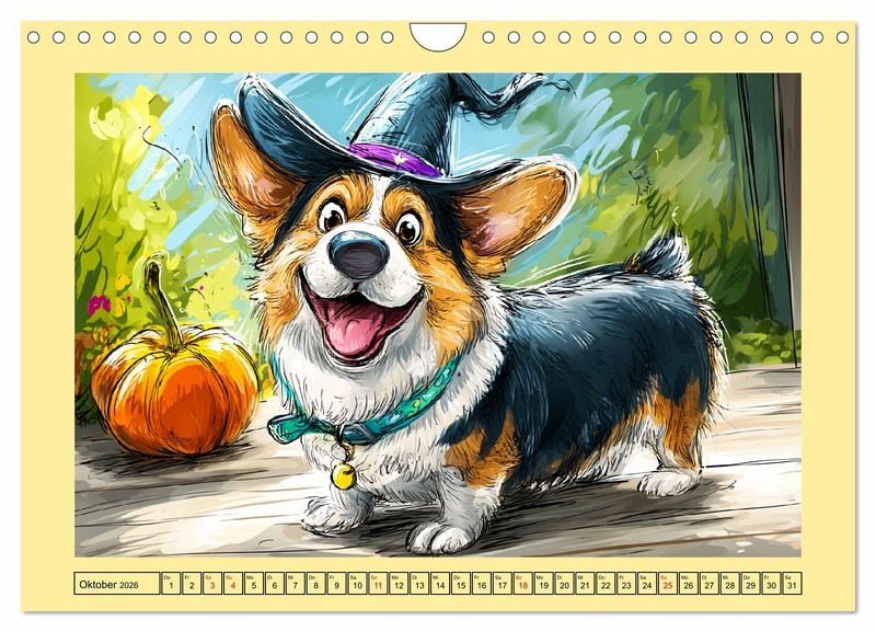 Dieser charmante Corgi Cartoon Kalender bringt jeden Monat gute Laune ins Haus! Die niedlichen Hunde mit ihren kurzen Beinchen und frechen Blicken erleben herrlich komische Abenteuer - vom Corgi mit Hasenohren bis zum glücklichen Geburtstag. Jeder Monat wurde mit der Hilfe von KI erstellt und zeigt eine neue Szene voller Herzenswärme und Witz. Ein Muss für alle Corgi-Fans und Liebhaber von humorvollen Tierillustrationen.