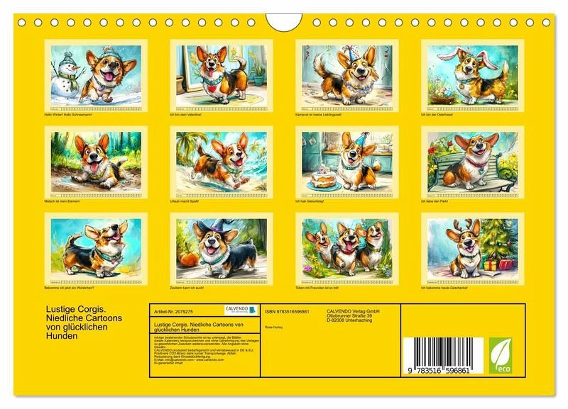 QUALITÄT - Hochwertiger Fotokalender mit 12 wunderschönen Motiven auf lichtbeständigem Bilderdruckpapier, robuste Spiralbindung mit Aufhängebügel.NACHHALTIG - deutliche Abfallreduzierung durch bedarfsgerechte Einzelstückfertigung, umweltfreundliches FSC-zertifiziertes Papier, Produktion in Deutschland, klimabewusste Logistik.PERFEKTES GESCHENK - Kalender für Freunde und Familie, für Kinder und Erwachsene, jung und alt, zu Weihnachten, Geburtstag oder zwischendurch.VIELFALT - Bildkalender in verschiedenen Formaten, z.B. DIN A5, DIN A4, DIN A3 sowie DIN A2. Ob Naturmotiv, Gemälde oder Fotos, ideal für ein persönliches Wohlfühlambiente.Ein fröhlicher Cartoon-Kalender mit liebenswerten Corgis in witzigen Szenen von Autor(in): Rose Hurley