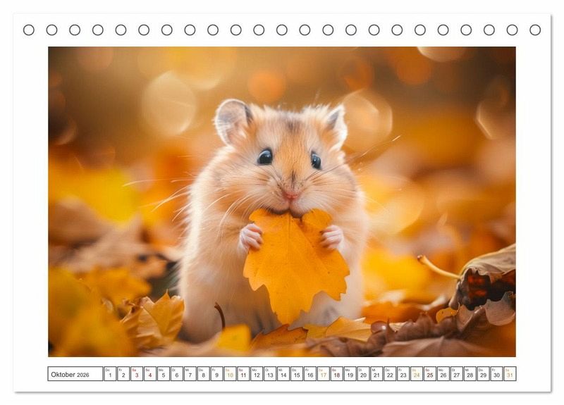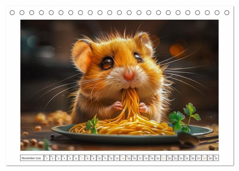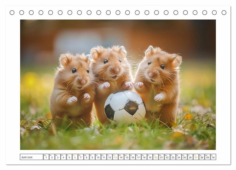 Willkommen im Reich der kleinen Kugeln voller Spaß und Lachen! Unsere lustigen kleinen Hamster sind nicht nur niedlich anzusehen, sondern auch echte Entertainer! Mit ihren putzigen Gesichtern und ihrem verspielten Wesen verzaubern sie jedes Zuhause im Handumdrehen. Ob sie in ihrem Hamsterrad herumrasen oder frech durch ihre Röhren flitzen - diese kleinen Fellnasen bringen die Sonne in Ihren Alltag. Holen Sie sich noch heute Ihren eigenen Bündel Freude und erleben Sie unendlich viele Momente voller Lachen und Liebe! Alle hier gezeigten Bilder wurden mit Sorgfalt, Liebe und mit Hilfe einer KI generiert. Abschließend werden sie mit Bildbearbeitungsprogrammen überarbeitet und in den Kalender eingefügt.