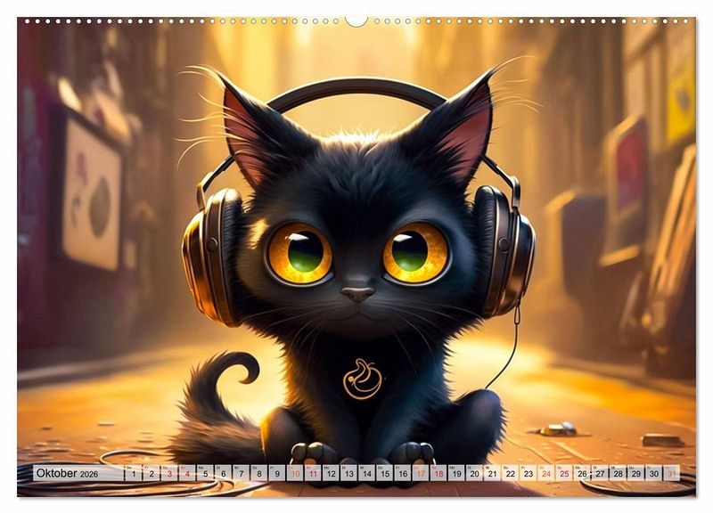Oktober: Kätzchen mit Kopfhörer