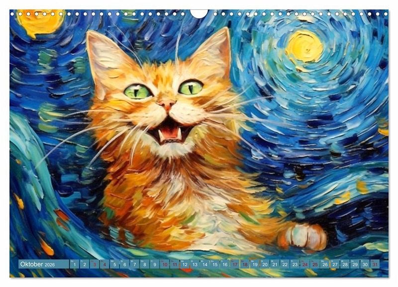 Was wäre, wenn bekannte moderne Künstler Katzen gemalt hätten? Und sich nicht allzu ernst dabei genommen hätten? Vielleicht wären dabei die Bilder dieses Kalenders entstanden. Fröhliche, witzige, absurde und kunterbunte Katzenbilder für ein ganzes Jahr. Die Bilder dieses Kalenders wurden erstellt mit Fantasie, Kreativität, künstlicher Intelligenz und Photoshop.