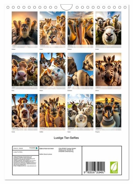 QUALITÄT - Hochwertiger Fotokalender mit 12 wunderschönen Motiven auf lichtbeständigem Bilderdruckpapier, robuste Spiralbindung mit Aufhängebügel.NACHHALTIG - deutliche Abfallreduzierung durch bedarfsgerechte Einzelstückfertigung, umweltfreundliches FSC-zertifiziertes Papier, Produktion in Deutschland, klimabewusste Logistik.PERFEKTES GESCHENK - Kalender für Freunde und Familie, für Kinder und Erwachsene, jung und alt, zu Weihnachten, Geburtstag oder zwischendurch.VIELFALT - Bildkalender in verschiedenen Formaten, z.B. DIN A5, DIN A4, DIN A3 sowie DIN A2. Ob Naturmotiv, Gemälde oder Fotos, ideal für ein persönliches Wohlfühlambiente.Wie Tiere aussehen, wenn sie selber Bilder mit dem Handy machen würden. von Autor(in): Steffen Gierok ; Magik Artist Design