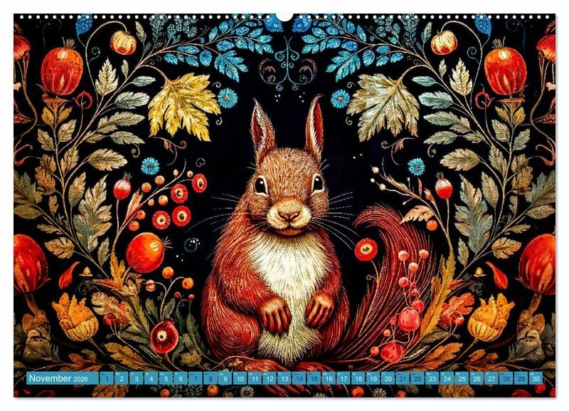 Jeder Monat enthüllt ein neues Bild, das die majestätische Tierwelt des Waldes in all ihrer Pracht darstellt. Von stolzen Hirschen und scheuen Füchsen bis hin zu putzigen Eichhörnchen und neugierigen Waschbären - unsere Illustrationen fangen die einzigartige Persönlichkeit dieser Tiere perfekt ein.