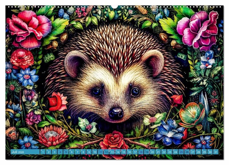 Jeder Monat enthüllt ein neues Bild, das die majestätische Tierwelt des Waldes in all ihrer Pracht darstellt. Von stolzen Hirschen und scheuen Füchsen bis hin zu putzigen Eichhörnchen und neugierigen Waschbären - unsere Illustrationen fangen die einzigartige Persönlichkeit dieser Tiere perfekt ein.