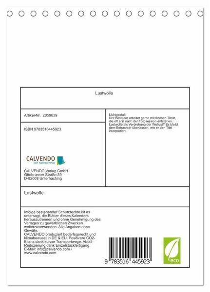 QUALITÄT - Hochwertiger Fotokalender mit 12 wunderschönen Motiven auf lichtbeständigem Bilderdruckpapier, robuste Spiralbindung.NACHHALTIG - deutliche Abfallreduzierung durch bedarfsgerechte Einzelstückfertigung, umweltfreundliches FSC-zertifiziertes Papier, Produktion in Deutschland, klimabewusste Logistik.PERFEKTES GESCHENK - Kalender für Freunde und Familie, für Erwachsene, zu Weihnachten, Geburtstag oder zwischendurch.VIELFALT - Bildkalender in verschiedenen Formaten, z.B. DIN A5, DIN A4, DIN A3 sowie DIN A2. Ob Naturmotiv, Gemälde oder Fotos, ideal für ein persönliches Wohlfühlambiente.Lust auf Wolle macht Wollust. Kuschelige Erotik auf nackter Haut von Autor(in): Lichtgestalt