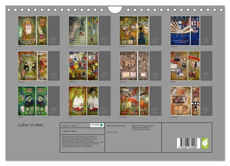 QUALITÄT - Hochwertiger Fotokalender mit 12 wunderschönen Motiven auf lichtbeständigem Bilderdruckpapier, robuste Spiralbindung mit Aufhängebügel.NACHHALTIG - deutliche Abfallreduzierung durch bedarfsgerechte Einzelstückfertigung, umweltfreundliches FSC-zertifiziertes Papier, Produktion in Deutschland, klimabewusste Logistik.PERFEKTES GESCHENK - Kalender für Freunde und Familie, für Kinder und Erwachsene, jung und alt, zu Weihnachten, Geburtstag oder zwischendurch.VIELFALT - Bildkalender in verschiedenen Formaten, z.B. DIN A5, DIN A4, DIN A3 sowie DIN A2. Ob Naturmotiv, Gemälde oder Fotos, ideal für ein persönliches Wohlfühlambiente.Luther - 500 Jahre Bibelübersetzung von Autor(in): Andrea E. Sroka