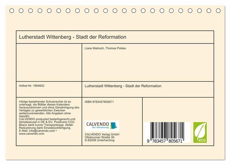 QUALITÄT - Hochwertiger Fotokalender mit 12 wunderschönen Motiven auf lichtbeständigem Bilderdruckpapier, robuste Spiralbindung.NACHHALTIG - deutliche Abfallreduzierung durch bedarfsgerechte Einzelstückfertigung, umweltfreundliches FSC-zertifiziertes Papier, Produktion in Deutschland, klimabewusste Logistik.PERFEKTES GESCHENK - Kalender für Freunde und Familie, für Kinder und Erwachsene, jung und alt, zu Weihnachten, Geburtstag oder zwischendurch.VIELFALT - Bildkalender in verschiedenen Formaten, z.B. DIN A5, DIN A4, DIN A3 sowie DIN A2. Ob Naturmotiv, Gemälde oder Fotos, ideal für ein persönliches Wohlfühlambiente.Streifzug durch die Residenzstadt Wittenberg von Autor(in): Thomas Polske