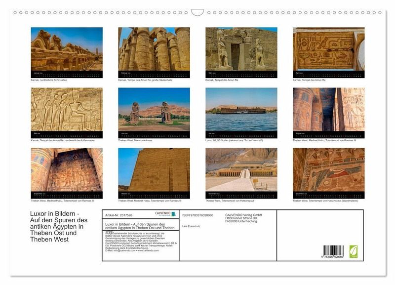 QUALITÄT - Hochwertiger Fotokalender mit 12 wunderschönen Motiven auf lichtbeständigem Bilderdruckpapier, robuste Spiralbindung mit Aufhängebügel.NACHHALTIG - deutliche Abfallreduzierung durch bedarfsgerechte Einzelstückfertigung, umweltfreundliches FSC-zertifiziertes Papier, Produktion in Deutschland, klimabewusste Logistik.PERFEKTES GESCHENK - Kalender für Freunde und Familie, für Kinder und Erwachsene, jung und alt, zu Weihnachten, Geburtstag oder zwischendurch.VIELFALT - Bildkalender in verschiedenen Formaten, z.B. DIN A5, DIN A4, DIN A3 sowie DIN A2. Ob Naturmotiv, Gemälde oder Fotos, ideal für ein persönliches Wohlfühlambiente.Luxor in Bildern, Theben West und Theben Ost von Autor(in): Lars Eberschulz