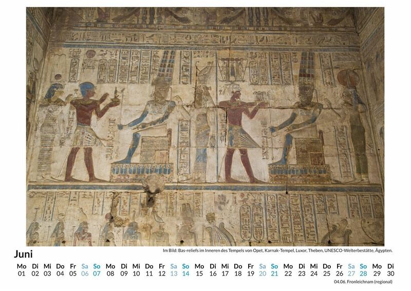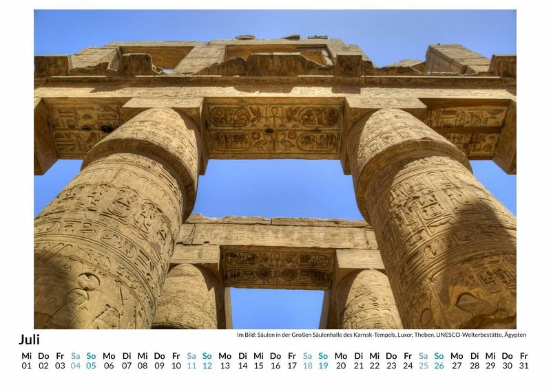 Entdecken Sie die faszinierende Welt von Luxor - der Stadt der Pharaonen! Unser hochwertiger Wandkalender entführt Sie Monat für Monat in die beeindruckende Geschichte und Kultur Ägyptens. Mit 12 atemberaubenden Motiven, die die majestätischen Tempel, das Tal der Könige und die malerischen Landschaften rund um den Nil zeigen, wird jeder Blick auf diesen Kalender zu einer Reise in die Vergangenheit. Gedruckt auf lichtbeständigem, FSC-zertifiziertem Bilderdruckpapier in Deutschland, vereint dieser Kalender Nachhaltigkeit und höchste Qualität. Perfekt für Liebhaber von Geschichte, Kultur und atemberaubender Fotografie - holen Sie sich ein Stück Ägypten nach Hause! Hochwertig Erleben Sie ein Jahr voller Eleganz mit unserem Premium-Fotokalender. Jedes der 12 Motive ist auf hochwertigem, lichtbeständigem Bilderdruckpapier gedruckt, um die Lebendigkeit jedes Bildes zu bewahren. Die robuste Spiralbindung gewährleistet Langlebigkeit und einfache Handhabung. Nachhaltig Unser Engagement für die Umwelt spiegelt sich in jedem Exemplar wider. Durch die Produktion auf Abruf reduzieren wir signifikant unseren Abfall. Wir verwenden ausschließlich umweltfreundliches, FSC-zertifiziertes Papier. Stolz gefertigt in Deutschland, achten wir bei unserer Logistik auf Klimaschutz, um unseren ökologischen Fußabdruck zu minimieren. Das ideale Geschenk Dieser Kalender ist das perfekte Präsent für jeden Anlass - ob Weihnachten, Geburtstage oder einfach als liebevolle Aufmerksamkeit zwischendurch. Geeignet für Freunde, Familie, Kinder und Erwachsene gleichermaßen, bereichert er jedes Zuhause mit seiner Vielfalt und Schönheit, unabhängig vom Alter der Beschenkten.