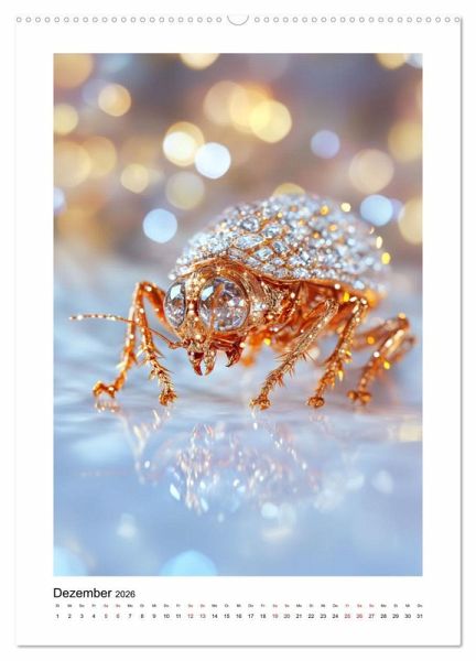 Tauchen Sie ein in eine Welt, in der das Gewöhnliche zum Außergewöhnlichen wird! Unser exklusiver Kalender verwandelt Insekten, Käfer und Spinnen in prachtvolle Kunstwerke - als wären sie aus Diamanten, Gold und Edelsteinen gefertigt. Inspiriert von historischen Schatzkammern wie dem Grünen Gewölbe, erschafft modernste KI-Technologie detailreiche, fotorealistische Darstellungen, die das Unmögliche möglich machen.