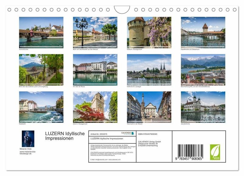 Luzern, umgeben von einer malerischen Landschaft, ist eine der schönsten Städte der Welt und reich an Sehenswürdigkeiten. In diesem attraktiven Kalender werden viele historische Bauten und traumhafte Ansichten rund um die Reuss gezeigt. Erleben Sie den pittoresken Schweizer Ort am Vierwaldstättersee in 12 farbenfrohen Szenen.
