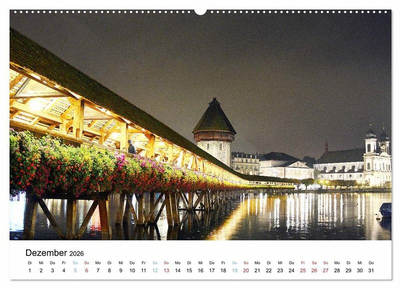 Dezember: Die Kapellbrücke bei Nacht