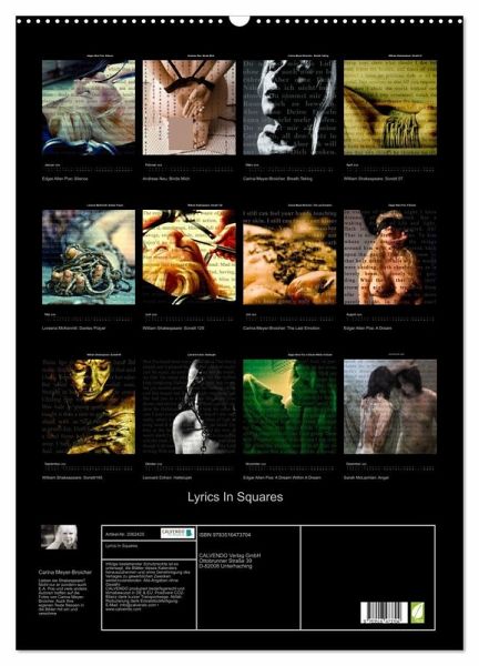 Lieben Sie Shakespeare? Nicht nur er sondern auch E.A. Poe und viele andere Autoren treffen auf die Fotos von Carina Meyer-Broicher. Auch Ihre eigenen Texte fliessen in die Bilder mit ein und verschmelzen so zu einer neuen Einheit. Fotos und Texte sind liebevoll aufeinander abgestimmt. Ob Fotos oder Texte mehr unter die Haut gehen, bleibt dem Betrachter überlassen.