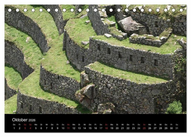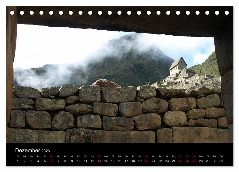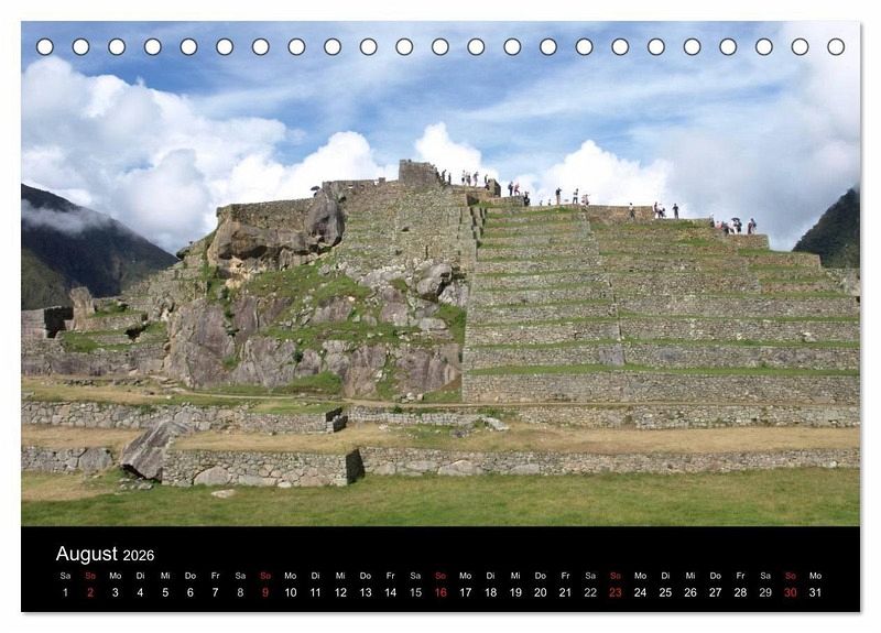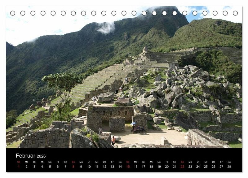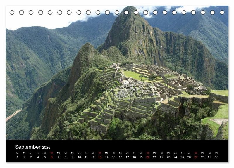 Dieser Kalender bringt dem Betrachter Monat für Monat die Faszination der Inkastadt Machu Picchu in den Anden von Peru näher. Gelegen auf einem Hochplateau umgibt diese Stadt etwas Mystisches und schließt die Besucher noch heute in ihren Bann. Machen Sie sich selbst ein Bild und tauchen für 12 Monate in diese weit entfernte Kultur ein.