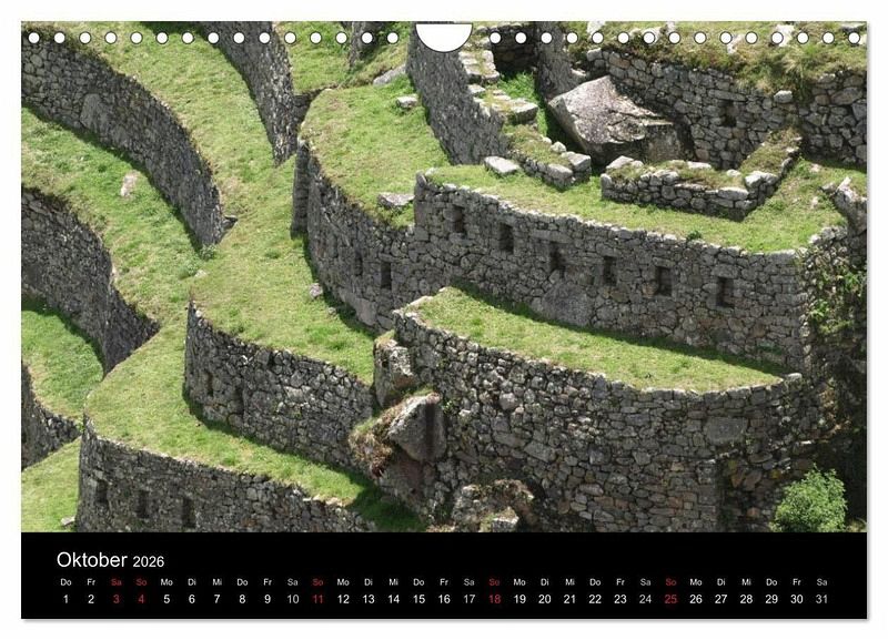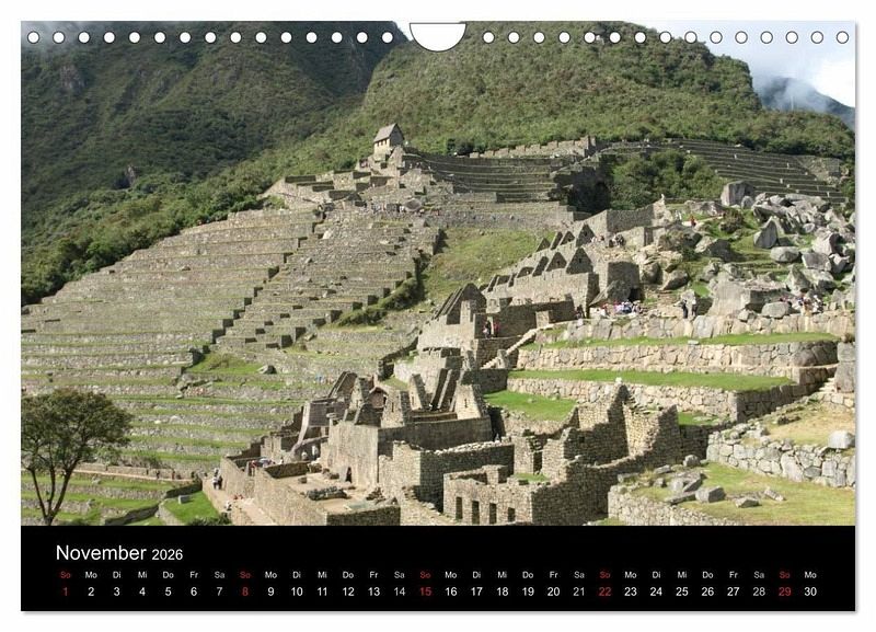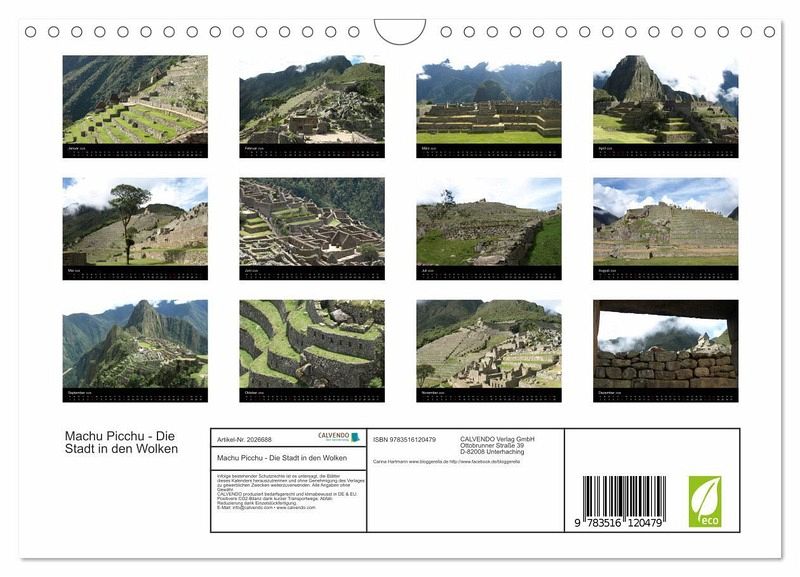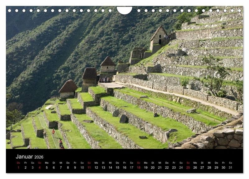Dieser Kalender bringt dem Betrachter Monat für Monat die Faszination der Inkastadt Machu Picchu in den Anden von Peru näher. Gelegen auf einem Hochplateau umgibt diese Stadt etwas Mystisches und schließt die Besucher noch heute in ihren Bann. Machen Sie sich selbst ein Bild und tauchen für 12 Monate in diese weit entfernte Kultur ein.