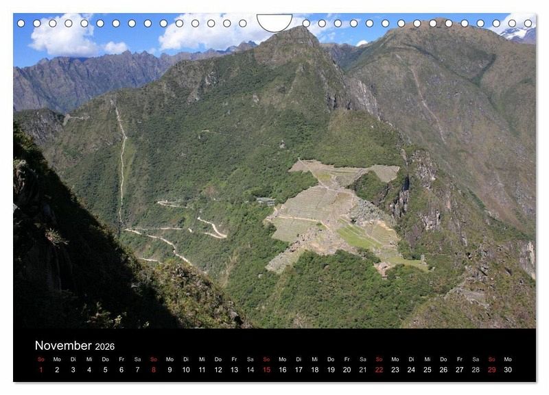 Februar: Machu Picchu mit dem charakteristischen spitzen Berg, dem Huayna Picchu