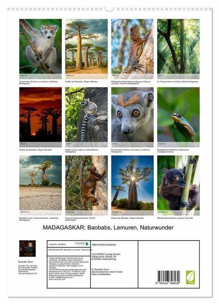 PREMIUM-LINIE - Brillanter Fotokalender mit 12 wunderschönen Motiven, Kunstdruck in Hochglanz in Museumsqualität.QUALITÄT - edle Materialien, stabile Rückwand mit 2 innovativen Einstecktaschen für eine optimale Präsentation an der Wand.NACHHALTIG - deutliche Abfallreduzierung durch bedarfsgerechte Einzelstückfertigung, umweltfreundliches FSC-zertifiziertes Papier, Produktion in Deutschland, klimabewusste Logistik.PERFEKTES GESCHENK - Kalender für Freunde und Familie, für Kinder und Erwachsene, jung und alt, zu Weihnachten, Geburtstag oder zwischendurch.Baobabs, Lemuren, Chamäleons und grandiose Naturlandschaften auf Madagaskar - die Insel im Osten Afrikas wird oft als der 6. Kontinent bezeichnet. von Autor(in): Guenter Guni