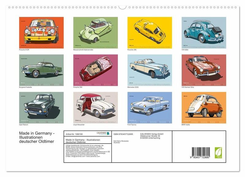 PREMIUM-LINIE - Brillanter Fotokalender mit 12 wunderschönen Motiven, Kunstdruck in Hochglanz in Museumsqualität.QUALITÄT - edle Materialien, stabile Rückwand mit 2 innovativen Einstecktaschen für eine optimale Präsentation an der Wand.NACHHALTIG - deutliche Abfallreduzierung durch bedarfsgerechte Einzelstückfertigung, umweltfreundliches FSC-zertifiziertes Papier, Produktion in Deutschland, klimabewusste Logistik.PERFEKTES GESCHENK - Kalender für Freunde und Familie, für Kinder und Erwachsene, jung und alt, zu Weihnachten, Geburtstag oder zwischendurch.Illustrationen deutscher klassischer Automobile der 60er Jahre von Autor(in): Karl-Heinz Morawietz