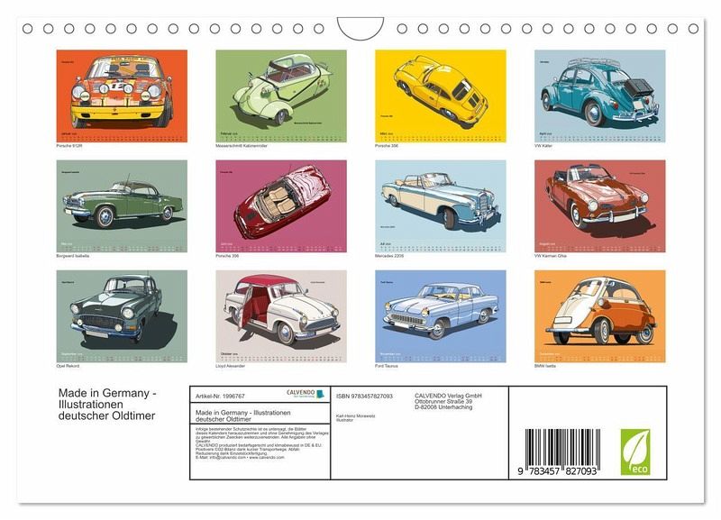 QUALITÄT - Hochwertiger Fotokalender mit 12 wunderschönen Motiven auf lichtbeständigem Bilderdruckpapier, robuste Spiralbindung mit Aufhängebügel.NACHHALTIG - deutliche Abfallreduzierung durch bedarfsgerechte Einzelstückfertigung, umweltfreundliches FSC-zertifiziertes Papier, Produktion in Deutschland, klimabewusste Logistik.PERFEKTES GESCHENK - Kalender für Freunde und Familie, für Kinder und Erwachsene, jung und alt, zu Weihnachten, Geburtstag oder zwischendurch.VIELFALT - Bildkalender in verschiedenen Formaten, z.B. DIN A5, DIN A4, DIN A3 sowie DIN A2. Ob Naturmotiv, Gemälde oder Fotos, ideal für ein persönliches Wohlfühlambiente.Illustrationen deutscher klassischer Automobile der 60er Jahre von Autor(in): Karl-Heinz Morawietz