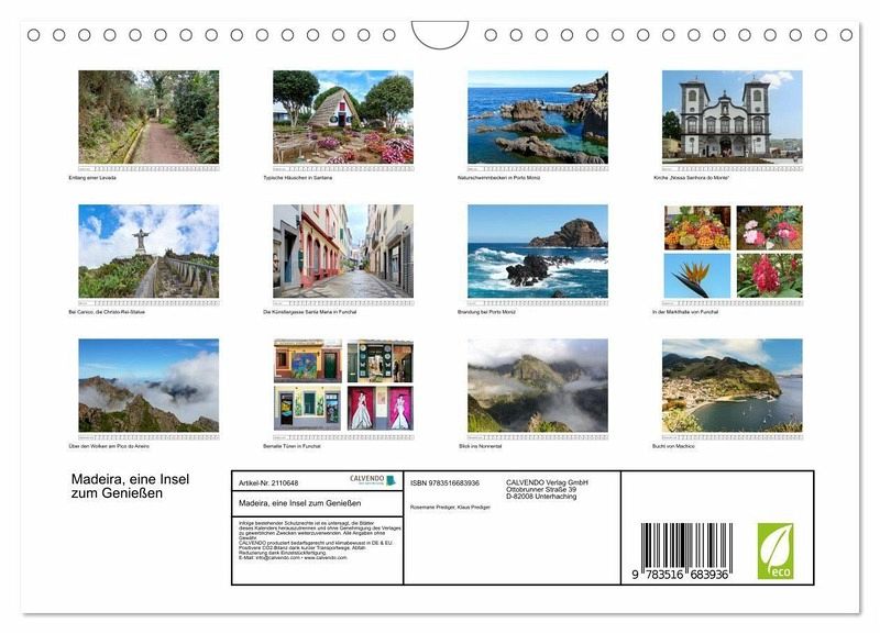 QUALITÄT - Hochwertiger Fotokalender mit 12 wunderschönen Motiven auf lichtbeständigem Bilderdruckpapier, robuste Spiralbindung mit Aufhängebügel.NACHHALTIG - deutliche Abfallreduzierung durch bedarfsgerechte Einzelstückfertigung, umweltfreundliches FSC-zertifiziertes Papier, Produktion in Deutschland, klimabewusste Logistik.PERFEKTES GESCHENK - Kalender für Freunde und Familie, für Kinder und Erwachsene, jung und alt, zu Weihnachten, Geburtstag oder zwischendurch.VIELFALT - Bildkalender in verschiedenen Formaten, z.B. DIN A5, DIN A4, DIN A3 sowie DIN A2. Ob Naturmotiv, Gemälde oder Fotos, ideal für ein persönliches Wohlfühlambiente.Egal zu welcher Jahreszeit, Madeira ist immer eine Reise wert. von Autor(in): Rosemarie Prediger