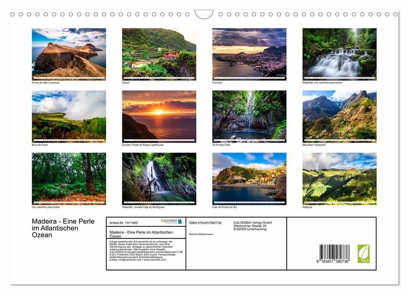 QUALITÄT - Hochwertiger Fotokalender mit 12 wunderschönen Motiven auf lichtbeständigem Bilderdruckpapier, robuste Spiralbindung mit Aufhängebügel.NACHHALTIG - deutliche Abfallreduzierung durch bedarfsgerechte Einzelstückfertigung, umweltfreundliches FSC-zertifiziertes Papier, Produktion in Deutschland, klimabewusste Logistik.PERFEKTES GESCHENK - Kalender für Freunde und Familie, für Kinder und Erwachsene, jung und alt, zu Weihnachten, Geburtstag oder zwischendurch.VIELFALT - Bildkalender in verschiedenen Formaten, z.B. DIN A5, DIN A4, DIN A3 sowie DIN A2. Ob Naturmotiv, Gemälde oder Fotos, ideal für ein persönliches Wohlfühlambiente.Eindrucksvolle Natur, zerklüftete Landschaften und malerische Orte: Madeira von Autor(in): Dennis Westermann