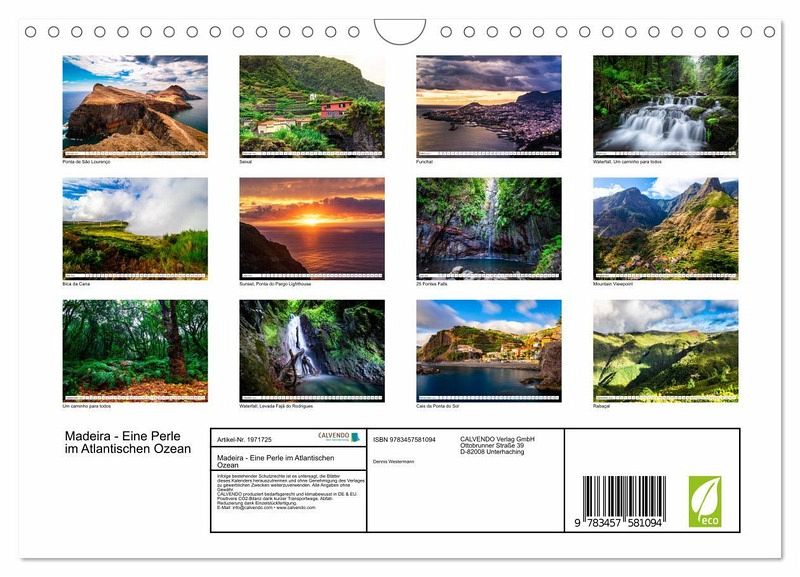 QUALITÄT - Hochwertiger Fotokalender mit 12 wunderschönen Motiven auf lichtbeständigem Bilderdruckpapier, robuste Spiralbindung mit Aufhängebügel.NACHHALTIG - deutliche Abfallreduzierung durch bedarfsgerechte Einzelstückfertigung, umweltfreundliches FSC-zertifiziertes Papier, Produktion in Deutschland, klimabewusste Logistik.PERFEKTES GESCHENK - Kalender für Freunde und Familie, für Kinder und Erwachsene, jung und alt, zu Weihnachten, Geburtstag oder zwischendurch.VIELFALT - Bildkalender in verschiedenen Formaten, z.B. DIN A5, DIN A4, DIN A3 sowie DIN A2. Ob Naturmotiv, Gemälde oder Fotos, ideal für ein persönliches Wohlfühlambiente.Eindrucksvolle Natur, zerklüftete Landschaften und malerische Orte: Madeira von Autor(in): Dennis Westermann