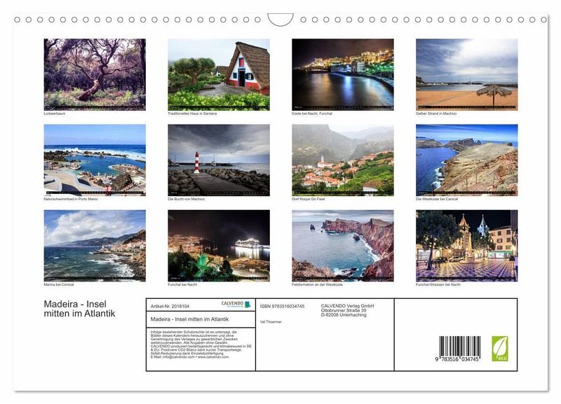 QUALITÄT - Hochwertiger Fotokalender mit 12 wunderschönen Motiven auf lichtbeständigem Bilderdruckpapier, robuste Spiralbindung mit Aufhängebügel.NACHHALTIG - deutliche Abfallreduzierung durch bedarfsgerechte Einzelstückfertigung, umweltfreundliches FSC-zertifiziertes Papier, Produktion in Deutschland, klimabewusste Logistik.PERFEKTES GESCHENK - Kalender für Freunde und Familie, für Kinder und Erwachsene, jung und alt, zu Weihnachten, Geburtstag oder zwischendurch.VIELFALT - Bildkalender in verschiedenen Formaten, z.B. DIN A5, DIN A4, DIN A3 sowie DIN A2. Ob Naturmotiv, Gemälde oder Fotos, ideal für ein persönliches Wohlfühlambiente.Die schöne portugiesische Insel Madeira von Autor(in): Val Thoermer