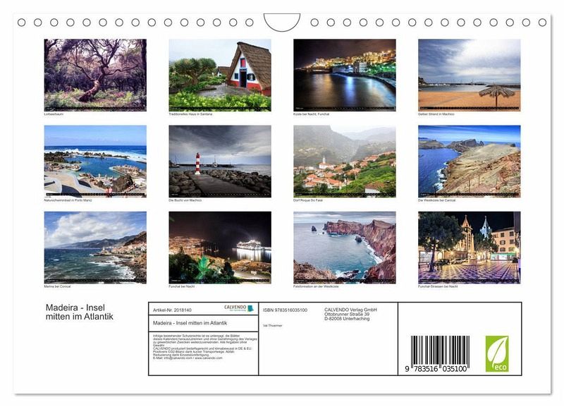 QUALITÄT - Hochwertiger Fotokalender mit 12 wunderschönen Motiven auf lichtbeständigem Bilderdruckpapier, robuste Spiralbindung mit Aufhängebügel.NACHHALTIG - deutliche Abfallreduzierung durch bedarfsgerechte Einzelstückfertigung, umweltfreundliches FSC-zertifiziertes Papier, Produktion in Deutschland, klimabewusste Logistik.PERFEKTES GESCHENK - Kalender für Freunde und Familie, für Kinder und Erwachsene, jung und alt, zu Weihnachten, Geburtstag oder zwischendurch.VIELFALT - Bildkalender in verschiedenen Formaten, z.B. DIN A5, DIN A4, DIN A3 sowie DIN A2. Ob Naturmotiv, Gemälde oder Fotos, ideal für ein persönliches Wohlfühlambiente.Die schöne portugiesische Insel Madeira von Autor(in): Val Thoermer