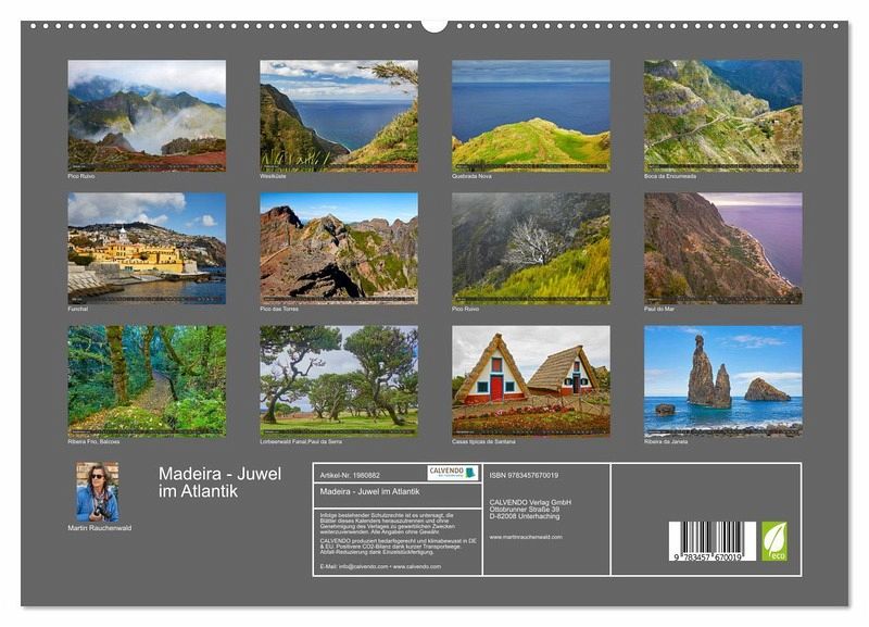 PREMIUM-LINIE - Brillanter Fotokalender mit 12 wunderschönen Motiven, Kunstdruck in Hochglanz in Museumsqualität.QUALITÄT - edle Materialien, stabile Rückwand mit 2 innovativen Einstecktaschen für eine optimale Präsentation an der Wand.NACHHALTIG - deutliche Abfallreduzierung durch bedarfsgerechte Einzelstückfertigung, umweltfreundliches FSC-zertifiziertes Papier, Produktion in Deutschland, klimabewusste Logistik.PERFEKTES GESCHENK - Kalender für Freunde und Familie, für Kinder und Erwachsene, jungund alt, zu Weihnachten, Geburtstag oder zwischendurch.Madeira, die zauberhafte immergrüne Insel im Spiel des Lichtes von Autor(in): Martin Rauchenwald