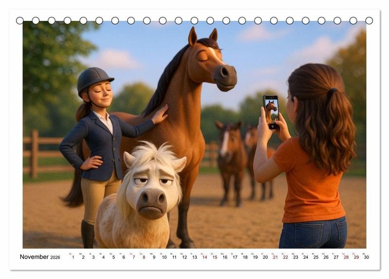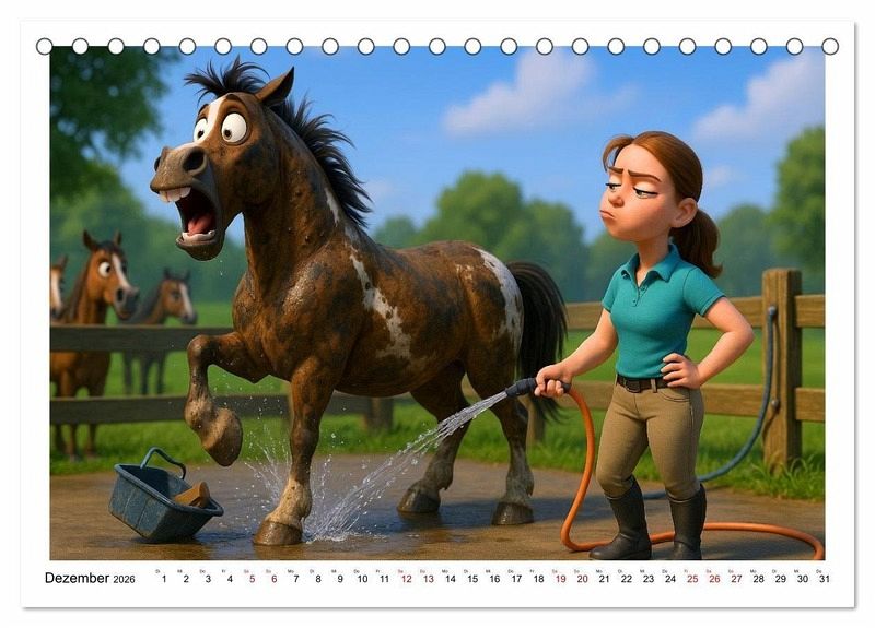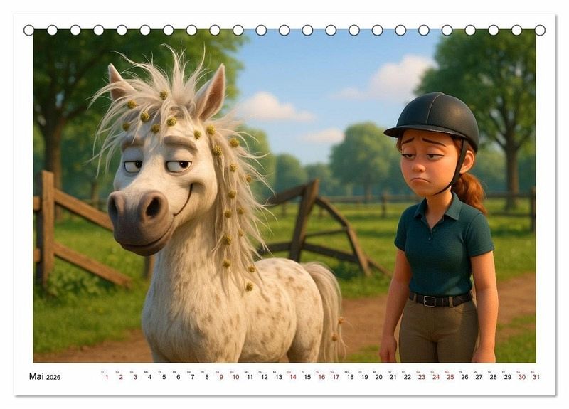 Dieser Kalender zeigt mit KI-gestalteten Bildern die lustigsten und chaotischsten Momente zwischen Pferd und Reiterin. Fast alle Szenen beruhen auf echten Erlebnissen der Autorin - wer Pferde kennt, erkennt sich sofort wieder. Die KI bringt diese Geschichten in farbenfrohe, humorvolle Bilder, die das Stallleben mit einem Augenzwinkern einfangen. Ein Kalender, der beweist: Pferde haben ihren eigenen Kopf - und genau das macht sie so liebenswert.