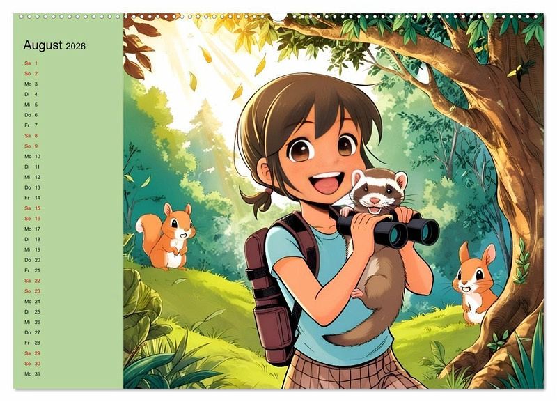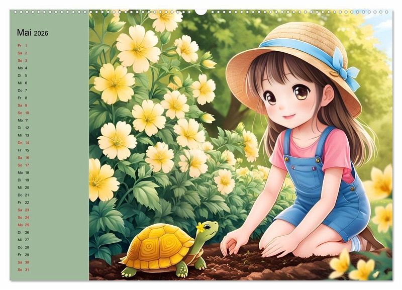 Entdecke den bezaubernden Kalender "Mädchen und ihre tierischen Freunde - Tierisch süße Mangas für Mädchen"! Monat für Monat warten niedliche Manga-Illustrationen auf dich, die die besondere Freundschaft zwischen Mädchen und ihren tierischen Begleitern zeigen. Ob verspielte Kätzchen, treue Hunde oder zauberhafte Meerschweinchen - jeder Monat bringt eine neue, liebevoll gestaltete Szene, die Manga-Fans und Tierliebhaberinnen gleichermaßen verzaubert. Perfekt für alle, die sich ein wenig Magie und gute Laune in den Alltag holen möchten. Ein Must-Have für dein Zimmer und ein toller Begleiter durchs ganze Jahr!