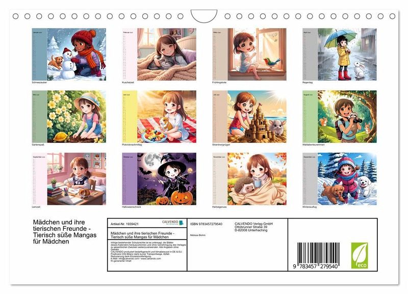 Entdecke den bezaubernden Kalender "Mädchen und ihre tierischen Freunde - Tierisch süße Mangas für Mädchen"! Monat für Monat warten niedliche Manga-Illustrationen auf dich, die die besondere Freundschaft zwischen Mädchen und ihren tierischen Begleitern zeigen. Ob verspielte Kätzchen, treue Hunde oder zauberhafte Meerschweinchen - jeder Monat bringt eine neue, liebevoll gestaltete Szene, die Manga-Fans und Tierliebhaberinnen gleichermaßen verzaubert. Perfekt für alle, die sich ein wenig Magie und gute Laune in den Alltag holen möchten. Ein Must-Have für dein Zimmer und ein toller Begleiter durchs ganze Jahr!