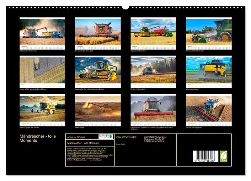 Erleben Sie die Faszination der modernen Landwirtschaft mit diesem Mähdrescherkalender. Werden Sie Zeuge der Evolution dieser Mammut-Maschinen, die immer größer und leistungsfähiger werden. Angetrieben von modernster Technologie, sind diese Mähdrescher der Inbegriff von Effizienz. Von schlank bis kolossal - ihr Design zieht jeden in seinen Bann. Peter Roder hat großartige Bilder von diesen kolossalen Erntemaschinen gestaltet. Ein Traum für jede Landwirtin und jeden Landwirt sowie für alle Technik-Freaks.