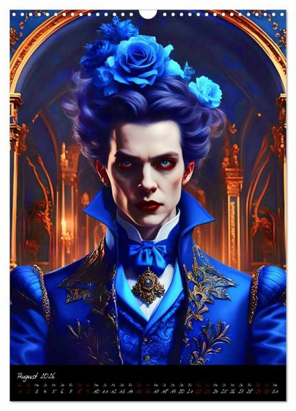 Tauchen Sie ein in die düstere Welt der Verführung und Mysterien mit dem Kalender "Männer der Finsternis - Mysteriöse Vampirmänner". Erleben Sie zwölf Monate lang die unwiderstehliche Anziehungskraft und geheimnisvolle Eleganz dieser faszinierenden Wesen der Nacht. Jeder Monat präsentiert einen neuen Vampirmann umgeben von einer Aura der unsterblichen Macht und der verlockenden Versuchung. Lassen Sie sich von der düsteren Schönheit dieser Männer der Finsternis verzaubern und tauchen Sie ein in eine Welt voller Geheimnisse und unergründlicher Abgründe. Für Fans des Übernatürlichen und der Gothic-Ästhetik ist dieser Kalender ein Muss und für alle die sich der Faszination der Nacht hingeben möchten. Bei der Erstellung der mystischen Schönheiten wurde eine KI verwendet.