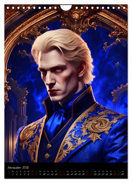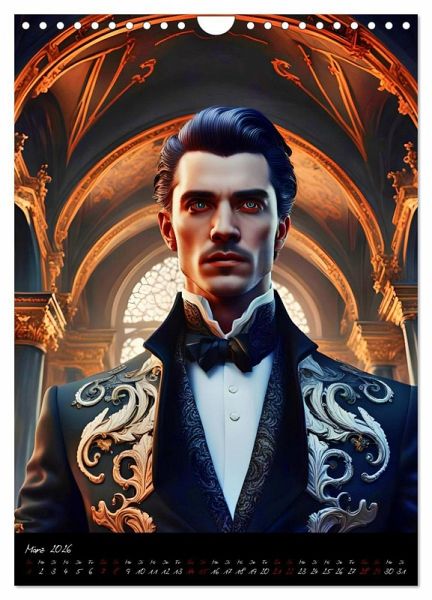 Tauchen Sie ein in die düstere Welt der Verführung und Mysterien mit dem Kalender "Männer der Finsternis - Mysteriöse Vampirmänner". Erleben Sie zwölf Monate lang die unwiderstehliche Anziehungskraft und geheimnisvolle Eleganz dieser faszinierenden Wesen der Nacht. Jeder Monat präsentiert einen neuen Vampirmann umgeben von einer Aura der unsterblichen Macht und der verlockenden Versuchung. Lassen Sie sich von der düsteren Schönheit dieser Männer der Finsternis verzaubern und tauchen Sie ein in eine Welt voller Geheimnisse und unergründlicher Abgründe. Für Fans des Übernatürlichen und der Gothic-Ästhetik ist dieser Kalender ein Muss und für alle die sich der Faszination der Nacht hingeben möchten. Bei der Erstellung der mystischen Schönheiten wurde eine KI verwendet.