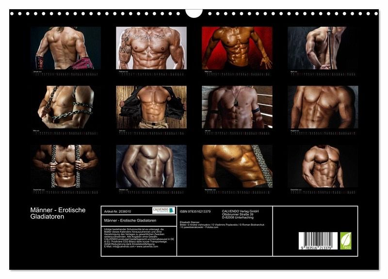QUALITÄT - Hochwertiger Fotokalender mit 12 wunderschönen Motiven auf lichtbeständigem Bilderdruckpapier, robuste Spiralbindung mit Aufhängebügel.NACHHALTIG - deutliche Abfallreduzierung durch bedarfsgerechte Einzelstückfertigung, umweltfreundliches FSC-zertifiziertes Papier, Produktion in Deutschland, klimabewusste Logistik.PERFEKTES GESCHENK - Kalender für Freunde und Familie, für Kinder und Erwachsene, jung und alt, zu Weihnachten, Geburtstag oder zwischendurch.PERFEKTES GESCHENK - Kalender für Freunde und Familie, für Erwachsene, zu Weihnachten, Geburtstag oder zwischendurch.Maskuline Erotik und Muskeln für besondere Stunden von Autor(in): Elisabeth Stanzer