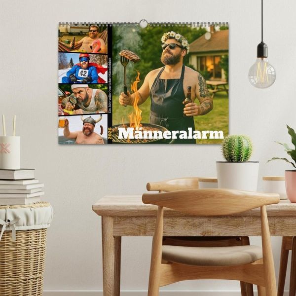 Mit Männeralarm bekommst du zwölf urkomische Motive, die den Alltag der Männerwelt auf die Schippe nehmen. Vom Grillgott über Chaosküchen bis hin zu entspannten Badewannenmomenten. Alle Bilder wurden aufwendig mit KI generiert und sind garantiert ein Blickfang. Ideal als Geschenk für Männer mit Humor, oder für alle, die schon immer wissen wollten, wie Männer ihren Alltag wirklich meistern.